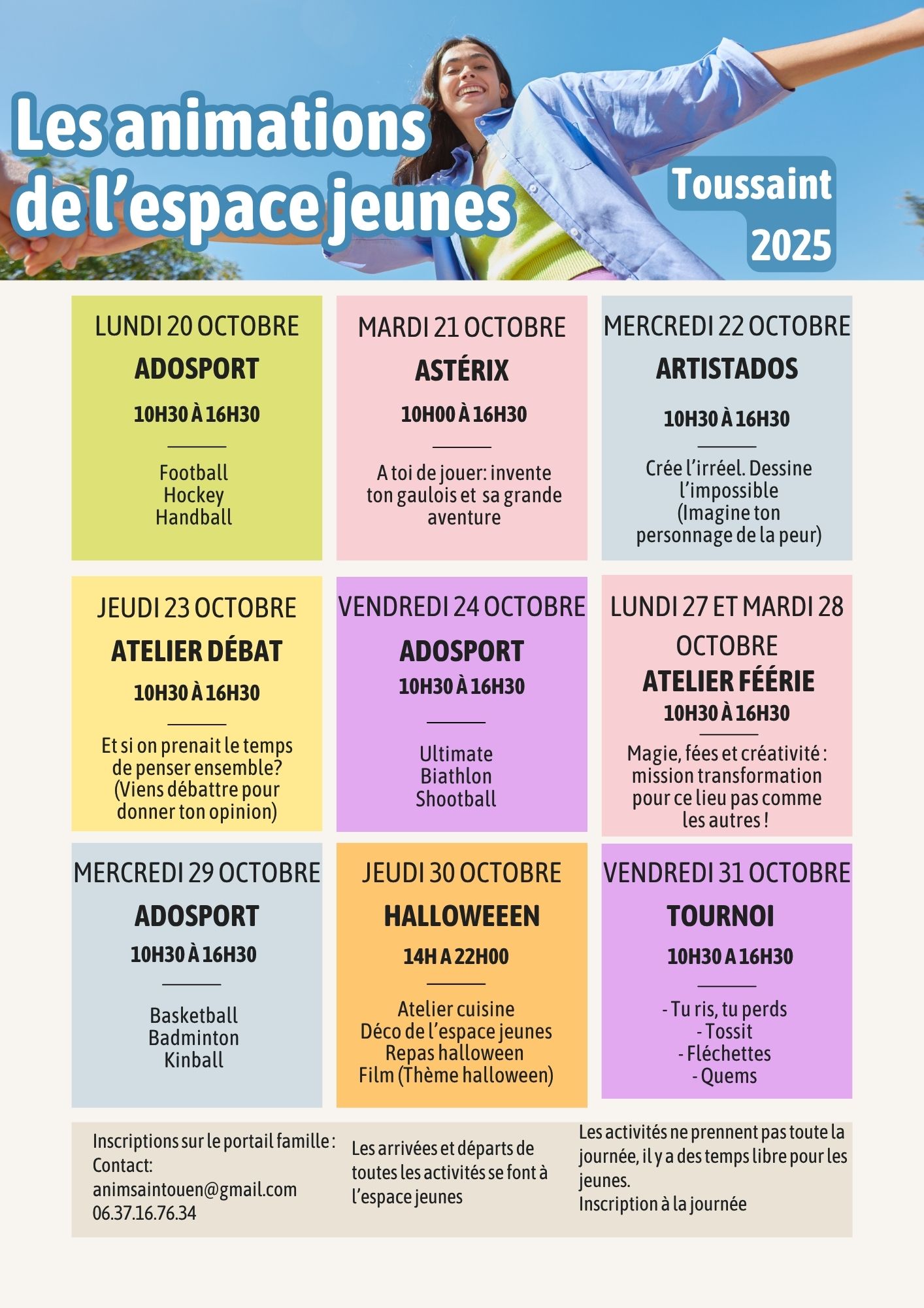 Pendant les vacances de la Toussaint 2025, l’Espace jeunes vous propose une série d’activités avec inscription à la journée via le portail Familles.